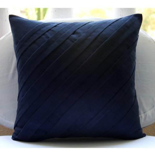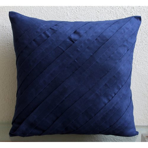 The HomeCentric Pintucks Suede Fabric 16-Inch-by-16-Inch Throw Pillow Cover, Navy Blue