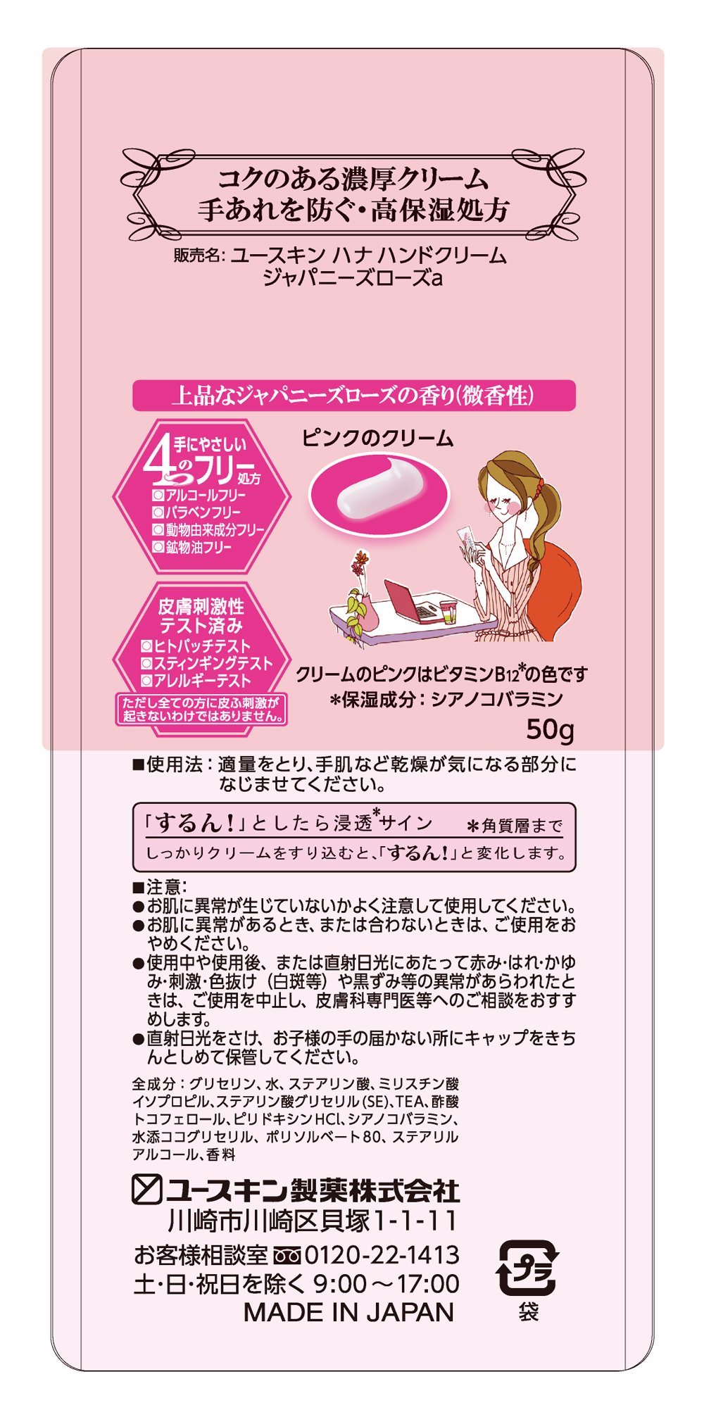 Japanese Skincare usukin Hana hand cream Japanese Rose 50g (coercive humidity hypo hand cream) *AF27*