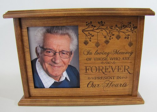 Wooden Cherry Cremation Urn for Human Ashes In Loving Memory of those who are FOREVER present in Our Hearts Hand Made in Solid Cherry Wood Hand Finished and Laser Engraved Wooden Cremation Urn in Home