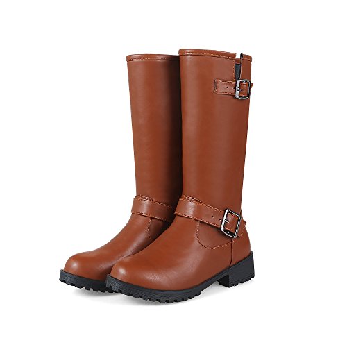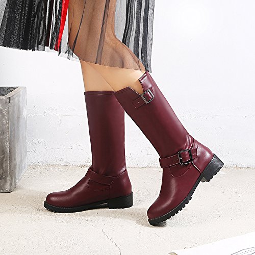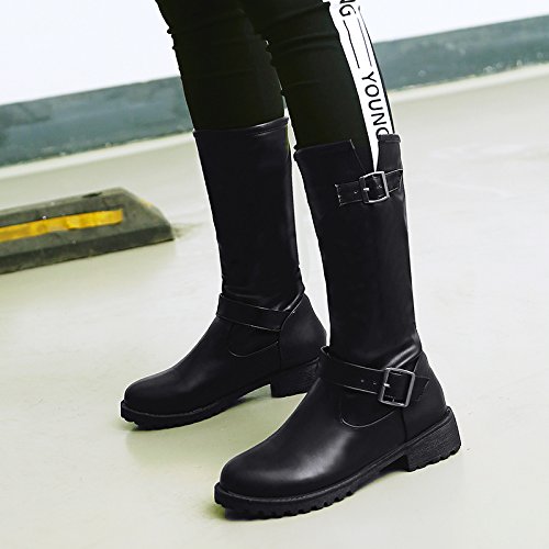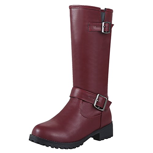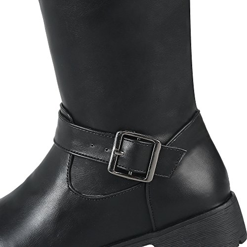 (Show Shine)/Women's/Boots/DIRECT FROM USA/Show Shine Women's Buckles Chunky Heel Mid Calf Harness Boots