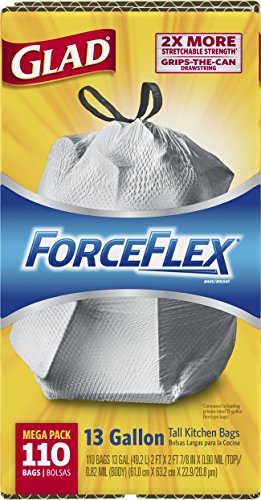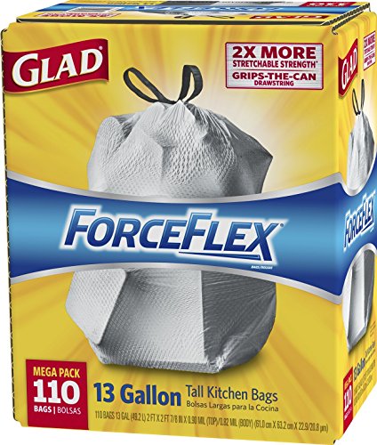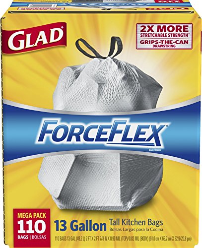Glad ForceFlex Drawstring Tall Kitchen Trash Bags, 13 Gallon, 110 Count
