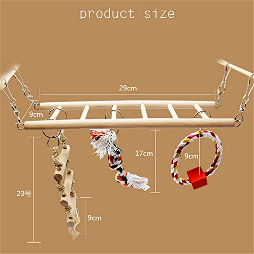 Product Function: It is designed for parrots and birds' playing, biting and standing. Product Parameters: 1. Size: ( about ) 29 * 9 cm / 11.42 * 3.54 inches 23 * 9 cm / 9.06 * 3.54 inches knot length: 17 cm / 6.69 inches diameter of rope ring : 9 cm / 3.54 inches 2. Material: wood cotton rope 0 |
