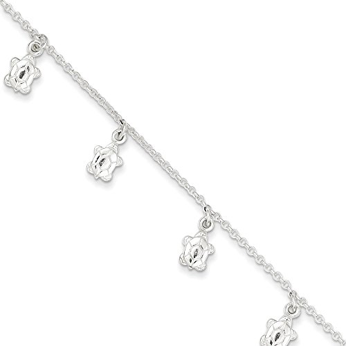 -. Title : Sterling Silver Polished Turtle With 1inch Ext. Anklet - 9 Inch
