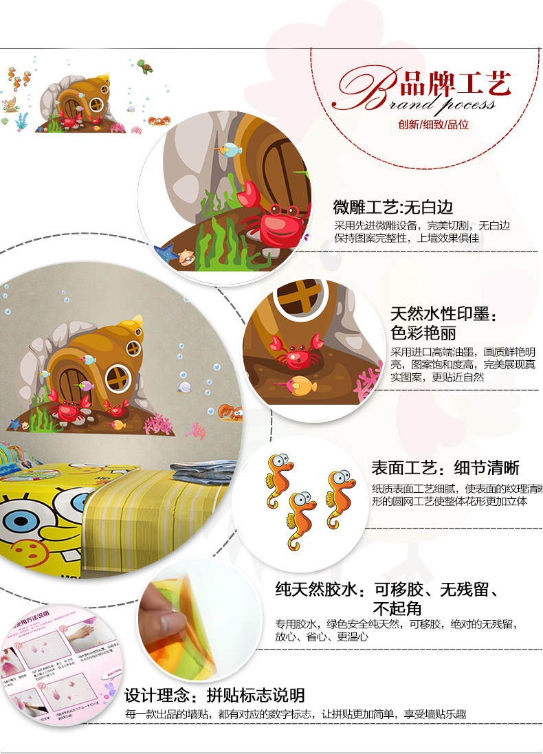 海底世界卡通墙贴 幼儿园学校教室布置贴画儿童房间创意装饰贴纸