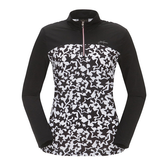 - 투톤 배색의 별 패턴을 매치한 여성 티셔츠.