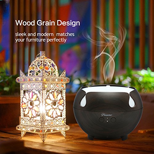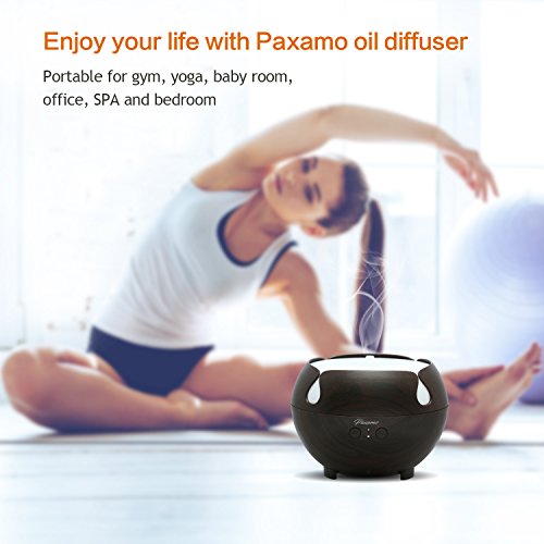 Paxamo Essential Oil Diffuser, 600ml Aromatherapy Diffuser with Wood Grain,Ultrasonic Cool Mist Diffusers, Aroma humidifier with 7 Color LED Light Waterless Auto Shut-off