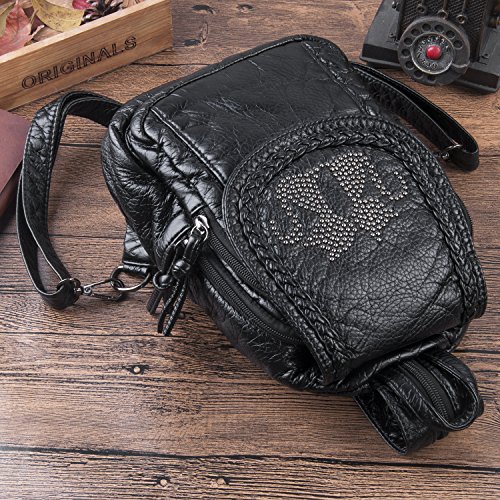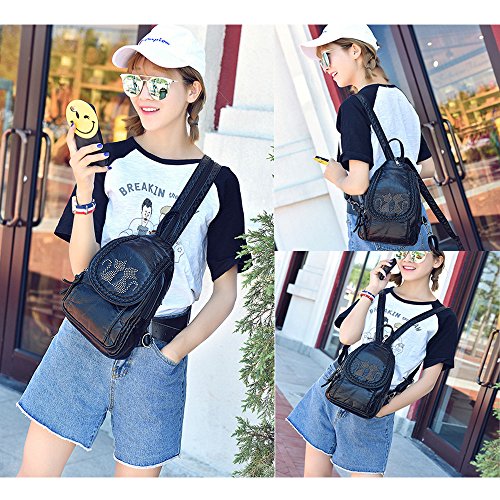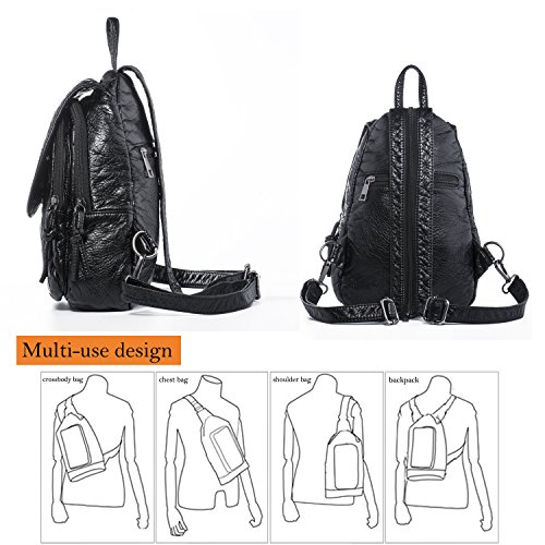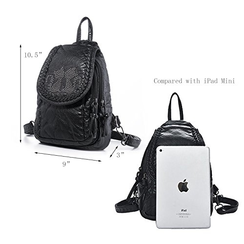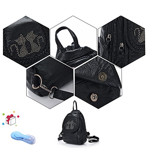 -. Feature : HIGH QUALITY - Ultra soft synthetic washed leather with modern black hardware, waterproof and anti-scratch. 2 adjustable back straps. / WELL DESIGN - Rivets studded to be a couple of cats on flapover, and braid stitched to modify the flap edge. A long zipper can easily converts the 2 back straps to 1 shoulder strap. This is a convertible 4-in-1 bag, used as a: backpack, shoulder bag, chest bag or a hand-carry bag. / LARGE CAPACITY - Interior: 1 magnetic closure pocket; 2 zipper compartments (the larger one contains 1 internal zip pocket and 2 open pockets); Exterior: 1 back zipper pocket. / EXTREMELY PRACTICAL - Comfortably holds a 7.9" iPad mini, 8" tablet and under, Interior pockets can hold your smartphone, folded umbrella, a small bottle of water and other items. / DIMENSIONS - 9" L x 10.5" H x 3" W. Weight: 14 oz. Adjustable back strap: 36". Package will include a nail clipper as a bonus.