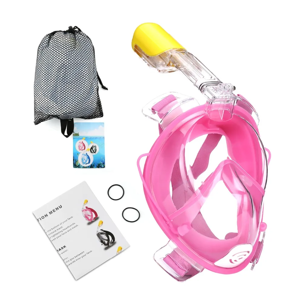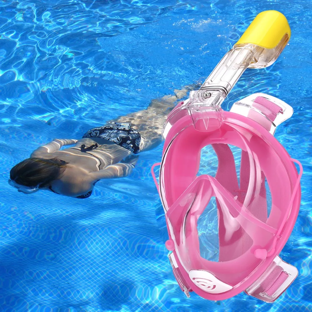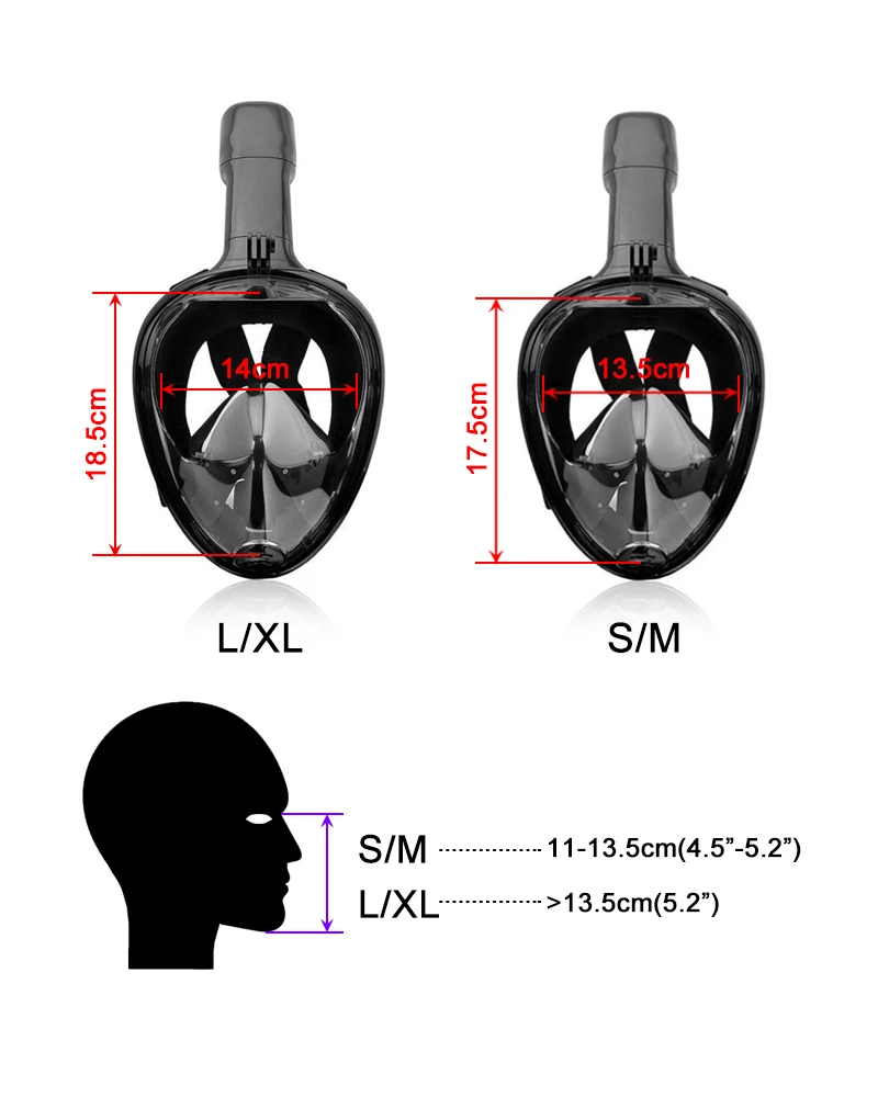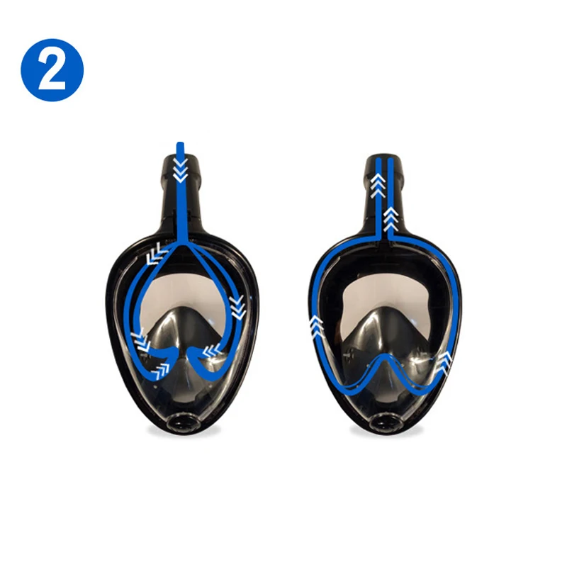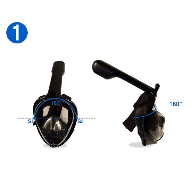 Our snorkeling mask is an 180 degrees full face snorkel mask with a free breathing innovative design.