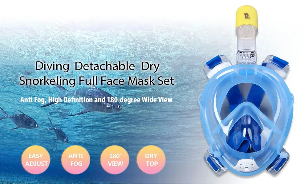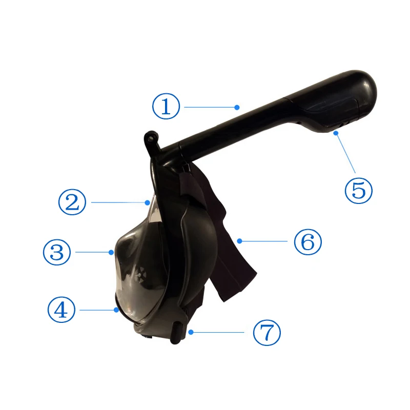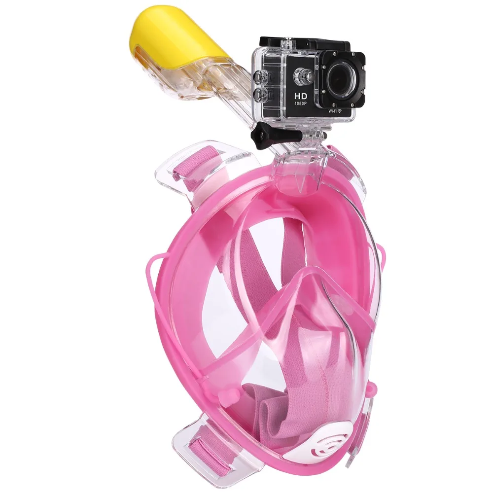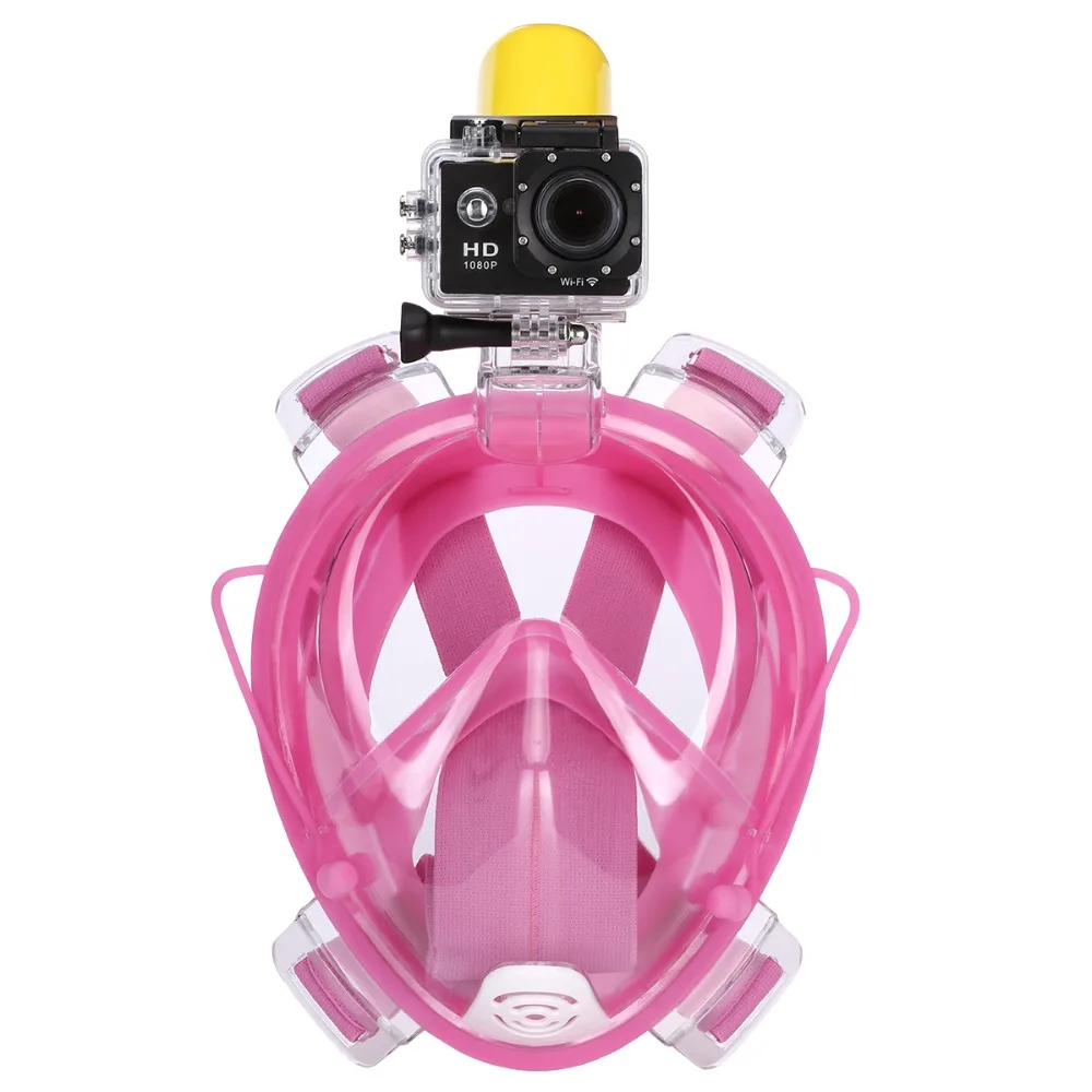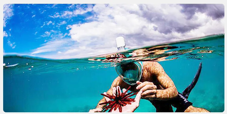 Our snorkeling mask is an 180 degrees full face snorkel mask with a free breathing innovative design.