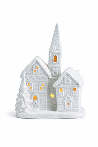Christmas Village House Church White LED Light Up 7.5 x 10 Porcelain Tabletop Figurine