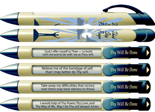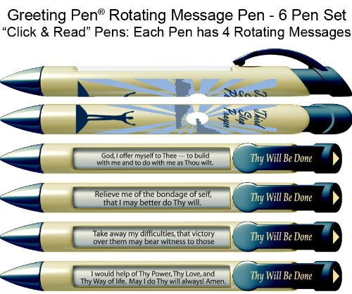 -. Feature : Set includes 6 pens; each pen is a "3rd Step" Recovery pen with 4 inspirational messages that rotate with every click of the pen: / Message 1: God, I offer myself to Thee - to build with me and to do with me as Thou wilt / Message 2: - Relieve me of the bondage of self, that I may better do Thy will / Message 3: Take away my difficulties, that victory over them may bear witness to those / Message 4: I would help of Thy Power, Thy Love and Thy Way of life. May I do thy will always! Amen.