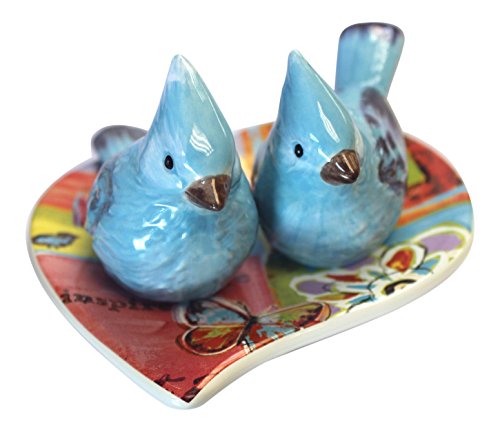 Daily Joy Bluebirds on Heart Plate Salt and Pepper Shakers 3 Piece Set Ceramic by Certified International