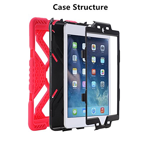 Ipad Mini 4 Case, Meiya Newest Miltary Heavy Duty Shockproof Water Resistant Case Shell for Ipad Mini 4, Full Protection Light Weight Kickstand Children Kid Ipad Mini 4 Case Gift (PINK+BLACK)