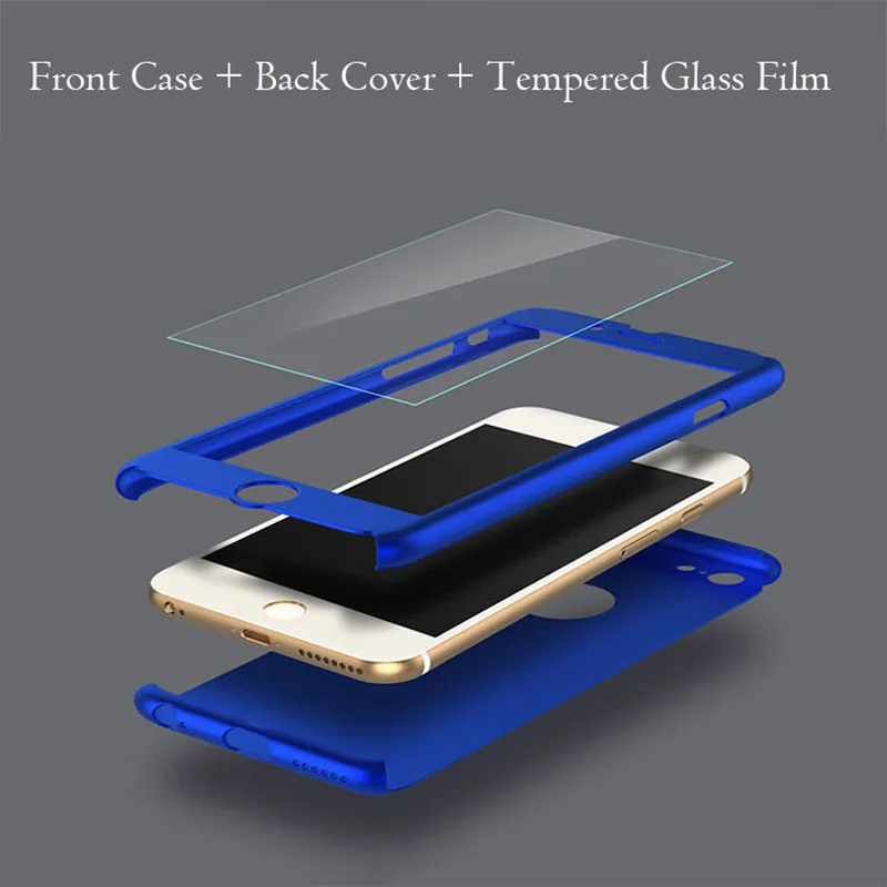 Style 1:360 Degree Full Cover Protector Case For iphone 6 7 With Glass Film