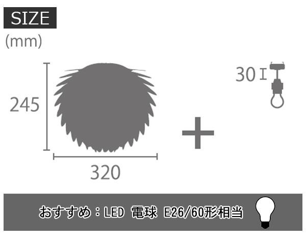 | サイズ | セード:φ320×H245mm、コード長:30mm 個装サイズ:33×25×20cm |