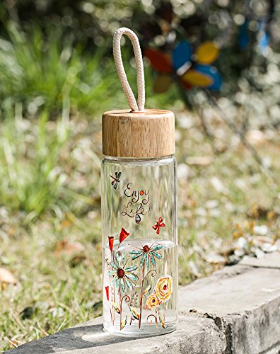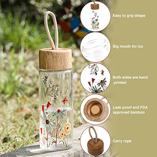 Glass Water Bottle with Leak Proof Lid BPA Free Double Sided Decal 16oz. By CYPRESS