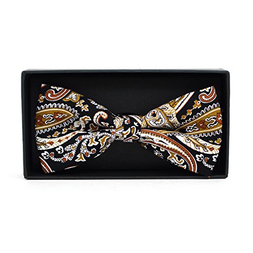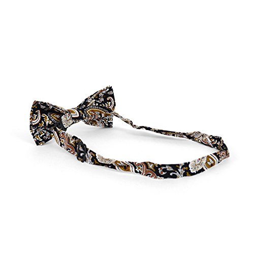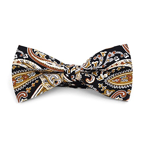 (Parquet)/Accessories/Ties/DIRECT FROM USA/Men’s Golden Age Paisley Black Cotton Boxed Banded Bow Tie