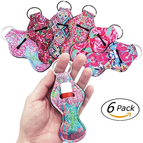 Chapstick Key Chain Holder with Secure Close Lid 6 Pack Lip Balm Holder Material: neoprene