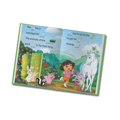-. Binding : Toy -. Brand : Dora the Explorer -. EAN : 0708431213203 -. Feature : Learn about self-confidence and leadership skills on a magical journey with Dora the Explorer / Features simple sentence structures and words with predictable spelling patterns / Teaches long and short vowels, sight words and word families / Ages 4-6 years / Works with LeapReader and Tag reading systems (sold separately). -. IsAdultProduct : 0 -. Label : Leapfrog -. LegalDisclaimer : New! Ships from Amazon Warehouse! Fast Shipping! -. Manufacturer : Leapfrog -. Model : 80-21320E -. MPN : 80-21320E -. NumberOfItems : 1 -. PackageQuantity : 1 -. PartNumber : 80-21320E -. ProductGroup : Toy -. ProductTypeName : TOYS_AND_GAMES -. Publisher : Leapfrog -. Studio : Leapfrog -. Title : LeapFrog LeapReader Early Reading Book: Nickelodeon Dora the Explorer: Tale of the Unicorn King (works with Tag) -. UPC : 433599341573 -. Warranty : 90 day warranty against manufacturer defects