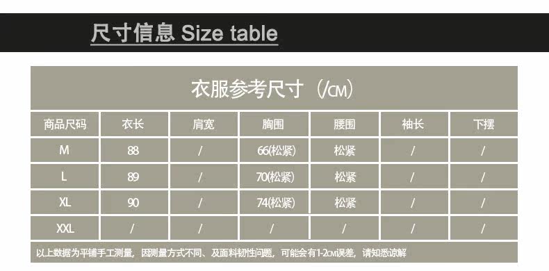 • 尺码: S M L XL