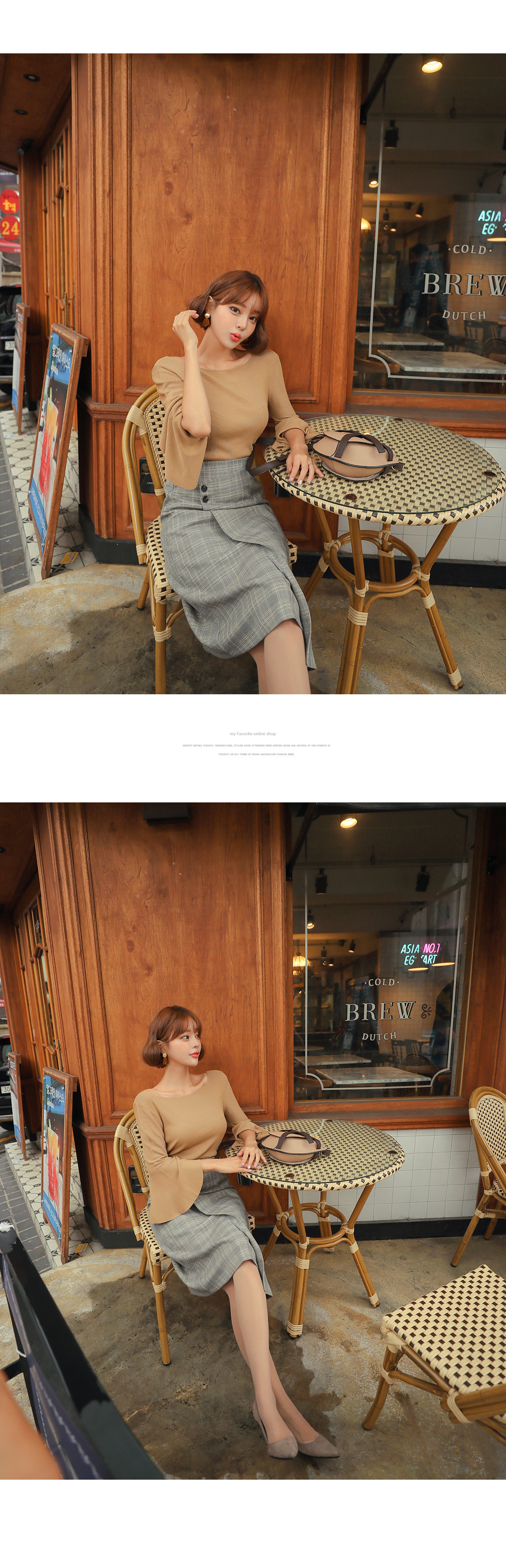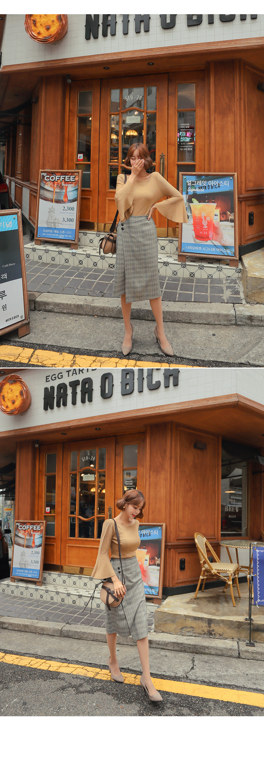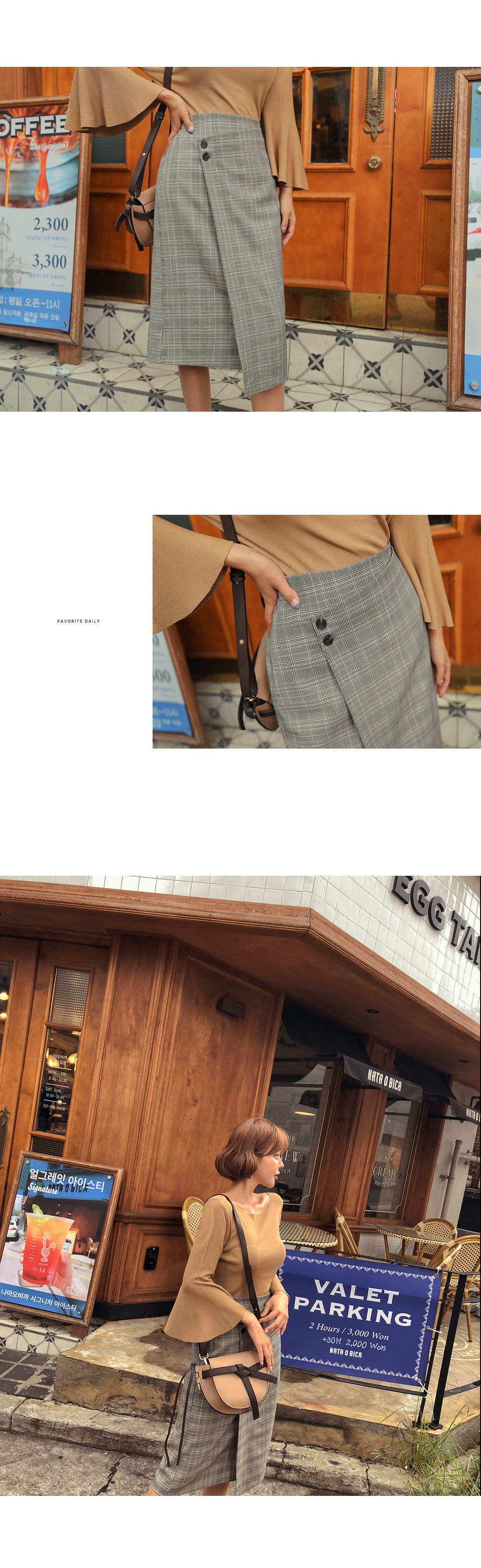 MD COMMENT트렌디한 룩을 연출해 줄 체크 스커트를 소개할게요.허리 높게 올라오는 하이웨스트 디자인에무릎까지 오는 롱한 기장감으로 한층- 더 길어보이는레그라인을 연출해주는 아이템인데요.허리라인에 쫀쫀한 반밴딩으로 흘러내림 걱정없이안정감있게 착용 가능하며허벅지 중간까지 오는 안감이 구성되어 있어비침 걱정없이 즐겨입기 좋아요.랩 스타일의 디자인에 더블 버튼 디테일이 더해져룩에 트렌디한 포인트 감각을 더해주었어요.깔끔하게 떨어지는 스커트 라인으로 부담없이 즐기기 좋으며멋스러운 컬러 배색으로 구성되어 있어데일리룩, 데이트룩 등 트렌디한 분위기를 한껏 연출해 줄 스커트 아이템으로 추천해요!오픈클로징은 사이드 콘솔지퍼로 손쉽게 탈,착용 가능해요.COLOR/SIZE브라운,그레이,다크그레이FREEMODEL FITTING그레이/FREE
