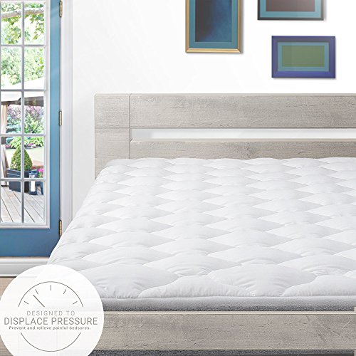 -. Feature : PREMIUM BED SORE & PRESSURE RELIEF - Tested and proven to relieve bed sores; A great mattress pad to reduce pressure and provide extra comfort to any bed / SOFT, HYPOALLERGENIC FILL - Generously filled with hypoallergenic down fiber that provides an authentic goose and duck down feel, minus the feathers, poking and allergies / FIRE TESTED - Laboratory-tested and certified safe according to Federal flammability standards without the use of flame retardant chemicals / SATISFACTION GUARANTEED - Our high-quality, American-made mattress pads are backed by a 100 percent money-back guarantee if you're not completely satisfied / A GREAT WAY TO SAVE - Perfect for restoring older mattresses, softening firm mattresses or cooling hot mattresses without spending thousands on a brand new mattress