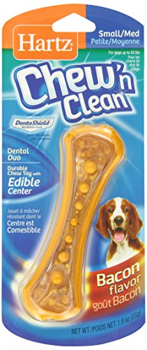 ReleaseDate : 2006-05-25 Studio : Hartz Publisher : Hartz Binding : Misc. Product Description Hartz Dental Chew N' Clean Dental Duo Toy and Edible Chew Small. This is a toy and treat in one with a hard nylon bone to clean teeth and gums and a delicious edible center that will make this your dogs favorite. Delicious sizzlin' bacon flavor that keeps them chewing for hours. 0