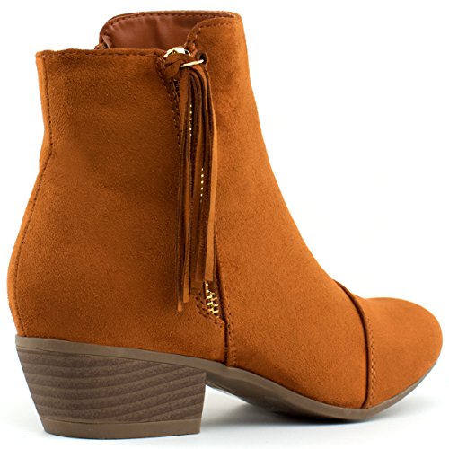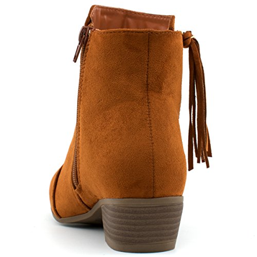 Product Description Fringe zipper booties work all year round! These western ankle boots have a trendy fringe zipper with a wooden, block heel and a vegan suede upper. 0