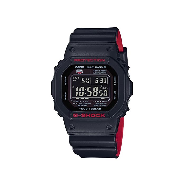 The set includes: body, box, instruction manual, warranty card is enhanced waterproof accessories for daily life in the instruction manual: 20BAR Country of origin: evolving G-SHOCK from the pursuit of Japan impact structure toughness, thoroughly to brand color stuck was "black and Red Series" appeared. The brand color of the G-SHOCK, adopted in the main color of the case band. The black representing the skies and toughness to the base color of the entire watch, Ashiraimashita red as a color insert in the part of the case color filled portion and the dial. The band has adopted a two-color molding process, was made black × red bi-color on the front and back. When worn, red except from the band sides, insists casually the identity of the G-SHOCK. The base model, inherited the DNA of primary G-SHOCK, adopted the GW-5000, which played a function evolution even while adopting the screw back. The toughness spirit that symbolizes the G-SHOCK is the emergence of New model representing the brand color. / ■ Shock structure / ■ Tough Solar (solar charge system) / ■ 20 atmospheric pressure waterproof function / ■ Radio reception function: Automatic reception (up to 6 times / day) (China radio waves up to 5 times / day) / manual reception, < Japan> reception radio wave: JJY, frequency: 40kHz / 60kHz (Fukushima / both bureau in Kyushu model) reception electric wave: WWVB, frequency: 60kHz reception electric wave: MSF / DCF77, frequency: 60kHz / 77.5kHz received radio wave: BPC, frequency: 68.5kHz ※ If you set the city can receive a home time setting, the receiving stations according to the city. In addition, time difference is set by the selected city. / ■ World time: 48 cities (29 time zones, daylight saving time setting function) + UTC time display (Coordinated Universal Time), UTC direct call function / ■ stopwatch (in hundredths of a second, a total of 24 hours, split) / ■ timer (set unit: 1 minute, set up: 24 hours, measured in seconds) / ■ this five alarm (with only one snooze function) times / ■ battery indicator displays / ■ power saving function (in the dark a certain period of time will save power and turn off the to display elapsed) / ■ Furuotokarenda / ■ 12/24-hour display switching / ■ Beep ON / oFF switching function / ■ EL backlight (full auto EL light with afterglow function ) / ■ screw back / ■ driving time from solar power in the state without the full charge: about 10 months when the function is used, the case about 26 months / around the arm (maximum power saving state About 20.5cm