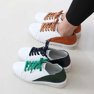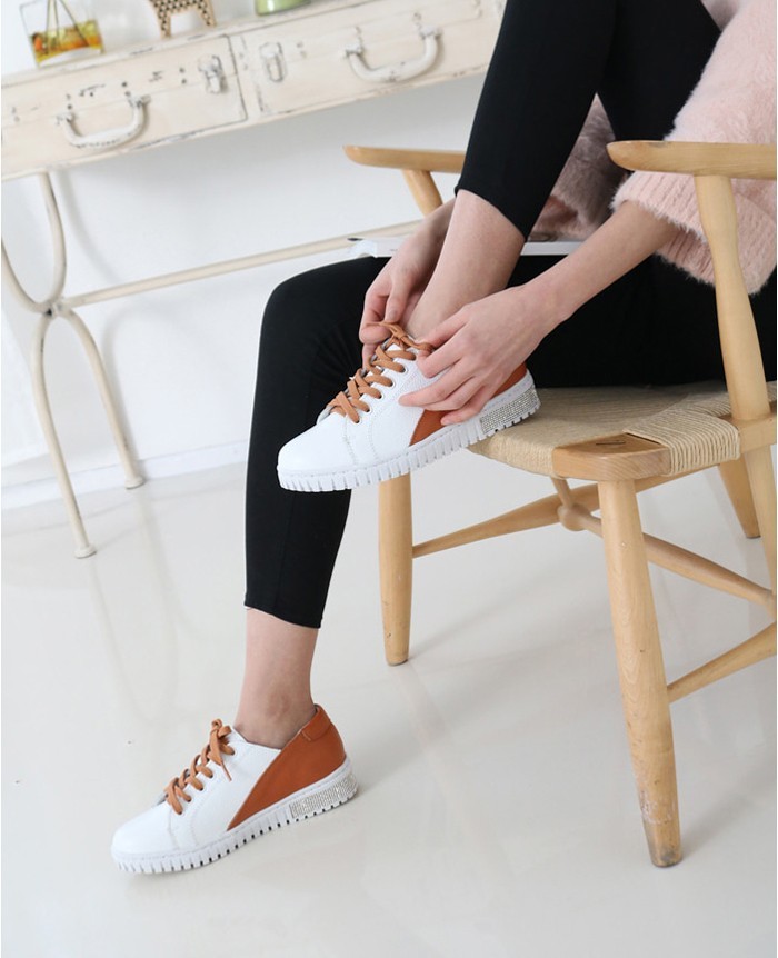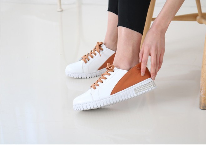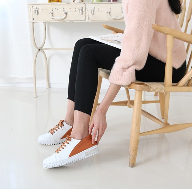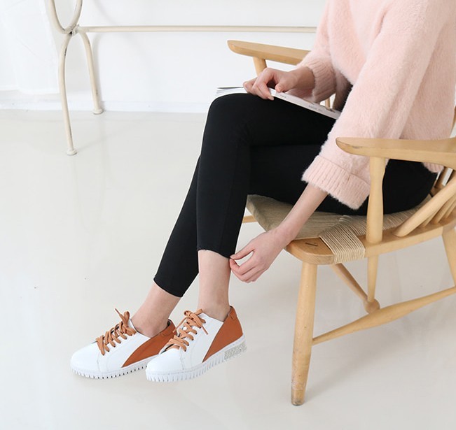 商品名:スニーカー レディース レースアップ 本革 レザー 2018 春 ファッション 靴 婦人靴