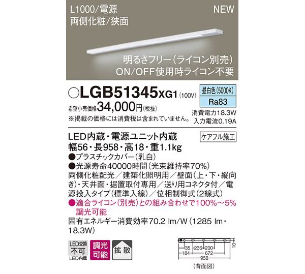 ●光源:LED(内蔵、昼白色タイプ)、色温度:5000K、光源寿命40000時間(光束維持率70%)