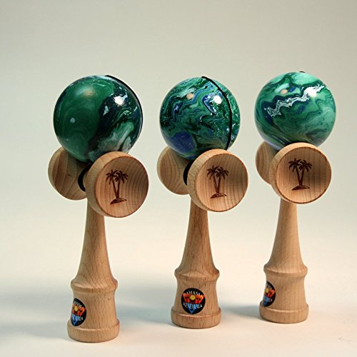 Product DescriptionSolid wood Hand Painted Marbled, green planet design by the artist Peng Bahama Kendama0