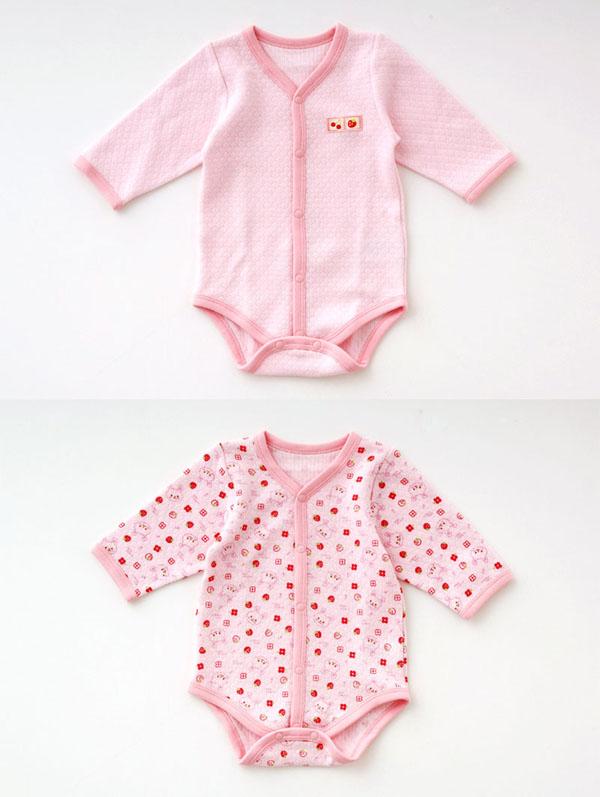 | ふっくらあったか素材で出来た冬のインナーにぴったりなロンパース!ウサちゃんとシンプル無地の2枚組です♪ |