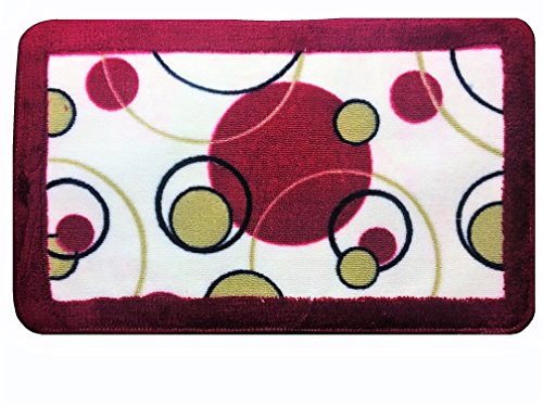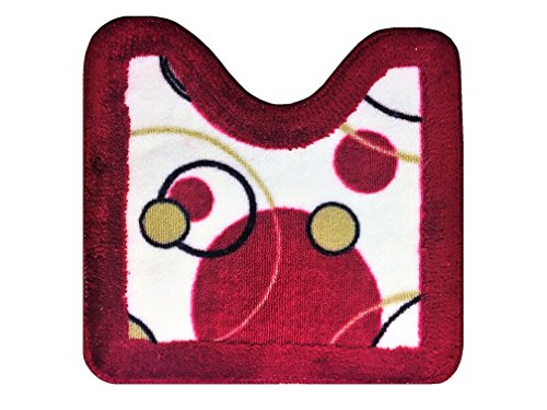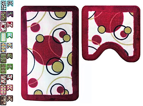 Bathroom Rug Set 2-Piece Modern Pattern Designs, Bath Mat 18"x28", Contour Mat 18"x17.5", Anti Roam Latex Backing (Circles ~ Red)