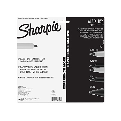 Sharpie Retractable Permanent Markers, Fine Point, Assorted Colors, 12 Count
