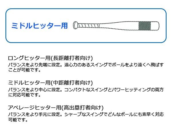 | 仕様 | 軟式少年用 小学中学年向け ミドルヒッター用 (財)全日本軟式野球連盟(J.S.B.B)公認 |