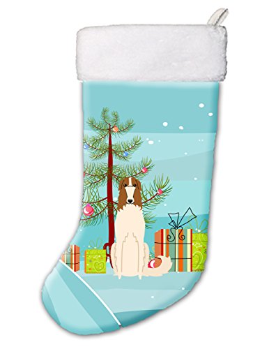 Caroline's Treasures BB4148CS Merry Christmas Tree Borzoi Stocking,Multicolor,Large