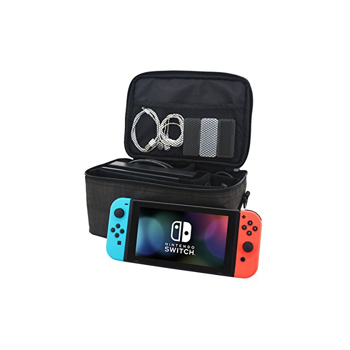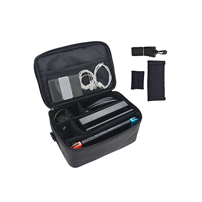 수납력:Nintendo Switch본체,Joy-Con그립/Joy-Con충전 blip,Nintendo Switch도크,Joy-Con스트랩,AC어댑터가 수납 가능합니다.착탈식이 부드러운 간막이해 나오고, 악세사리를 분류해 수납 하면서,본체와 다른 부분을 간막이하고, 쿠션성도 있습니다.메쉬 포켓에는 HDMI나 USB케이블이나 게임 카드 케이스 등도 수납에 옵니다.