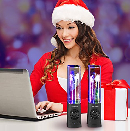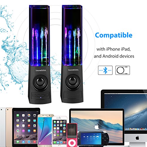SoundSOUL Bluetooth Dancing Water Speakers LED Speakers Wireless Water Fountain Speakers (Bluetooth 4.0, 4 Colored LED Lights, Dual 3W Speakers, Built-in Rechargeable 1800mAh Battery) (Dark Black)
