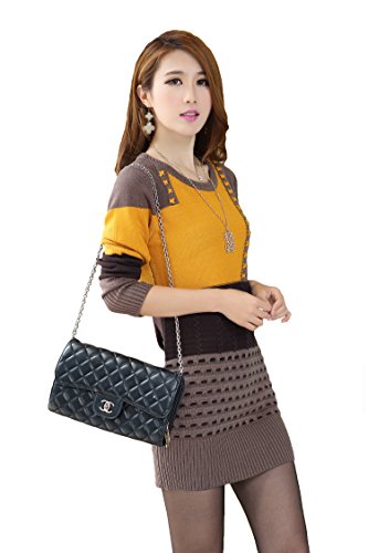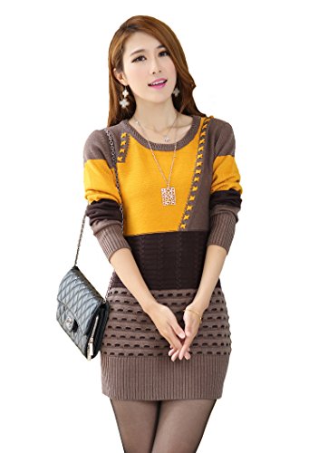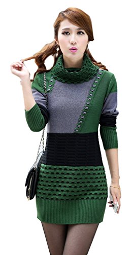 V28® Womens Midi Pattern Colorblocks Knit Sweater Dress Thick Undershirt (XL: US 10/12, ClrBlck-GreenGrey)