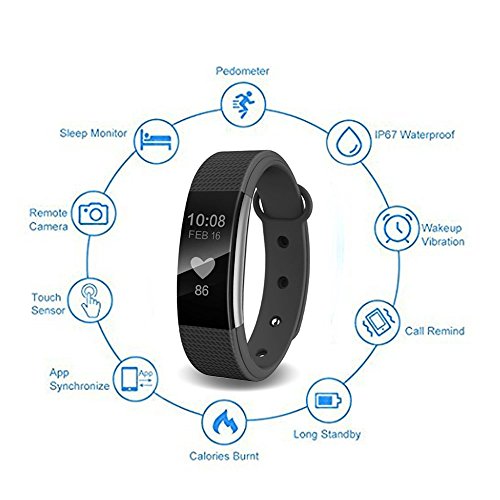 -. Title : Fitness Tracker,Smart Band Slim Touch Screen Activity Health Tracker with Heart Rate Monitors Pedometer and Sleep Monitor Calorie Counter Watch,Pedometer Sports Bracelet For Android or iOS Phone