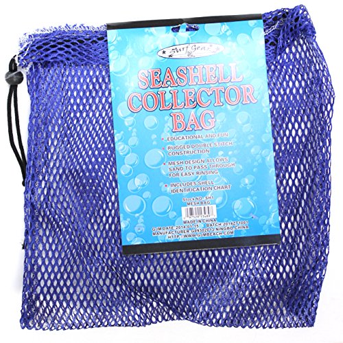 -. Brand : SURFGEAR -. Feature : Red Double Stitch Construction / Mesh Design allows sand to pass through for easy rinsing / Includes Shell Identification Chart / Also great as a small beach or tote bag / Fully Collapse-able- Can fit in your pocket when empty! -. ProductGroup : Apparel -. ProductTypeName : LAGE -. Title : Mesh Seashell Collection Bag (12 inches x 12 inches) with Shell Identification Guide