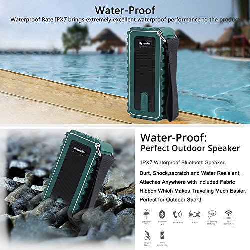 HIGHEST WATERPROOF RATING: With IPX7 WATERPROOF RATING mean that it can WATERPROOF,SHOCKPROOF, DUSTPROOF & SCRATCHPROOF, "My Speaker" can as a shower radio, work radio, hot tub speaker, portable speaker and many many more ! ( PLEASE NOTE: Due to the horn is behind the speaker so it can't play music when it submersed in water, so please don't put it in the water if you want to listen to music instead of testing its Waterproof function!)