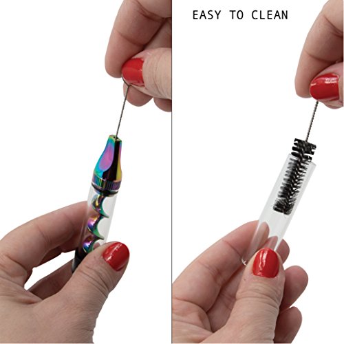 ? Made From Premium Heat Resistant Glass That Won't Rust. ? Features Multicolor Flat Tip Spiral Mill Made Of Titanium. ? Flat Tip And Filter System Improves Airflow And Pull. ? Comfortably Stores Up To 1.5 Grams Of Your Favorite Herbs And Spices. ? Does Not Need To Be Completely Filled To Use. For Best Results, Fill At Least A Quarter Of The Tube.