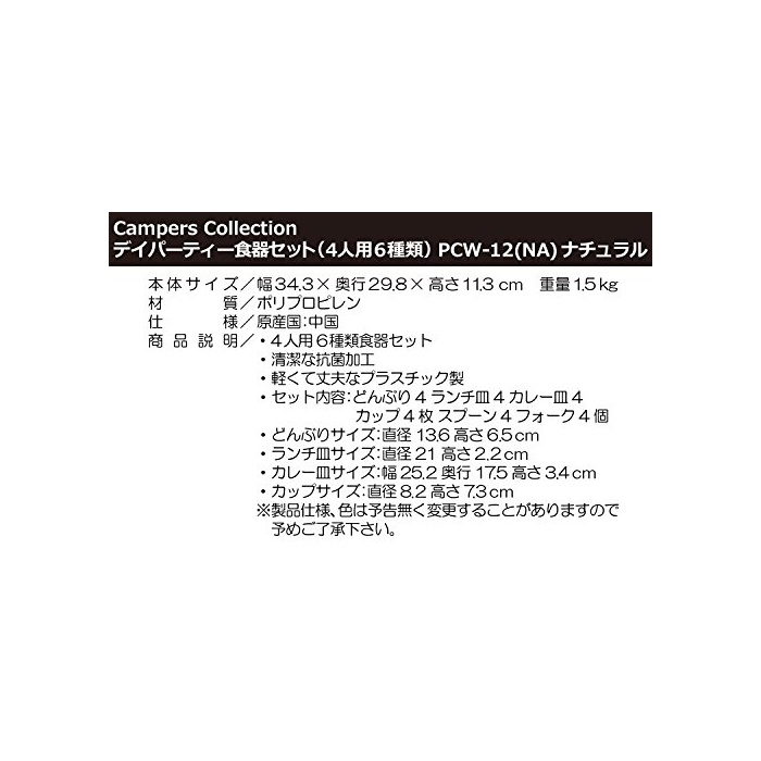 원본상품명: キャンパ?ズコレクション デイパ?ティ?食器セット(4人用6種類) ナチュラル PCW-12(NA)