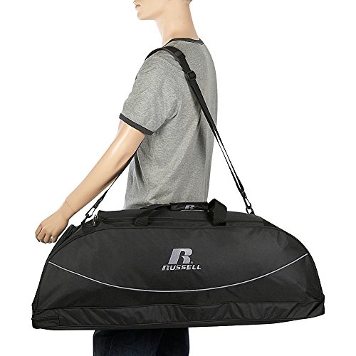 -. Brand : Russell -. Feature : Large wide mouth zippered opening for easy access and organization. / A ventilated zippered pocket on one end for shoes or wet clothes. / Separate bat compartment holds three bats with hook which allows it to be easily hung. / Top carrying handles wvelcro grip closure, adjustable and detachable shoulder strap with non-slip shoulder grip. / Size: 35 x 12 x 10 -. Label : Russell -. Manufacturer : Russell -. PackageQuantity : 1 -. ProductGroup : Apparel -. ProductTypeName : LAGE -. Publisher : Russell -. Size : One Size -. Studio : Russell -. Title : Russell Deluxe 35" Baseball Bat Bag