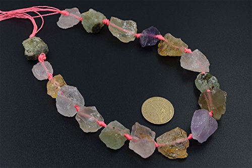 Natural Multi-color Quartz Crystal Nugget Raw Graduated Beads Strand 2mm Hole Drilled