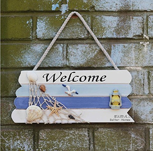 DOODEEN Welcome Sign,Home Decorative Welcome Wall Plaque,Hanging Ornaments Wood Sign,Boat Beach Ocean Seaside Theme Handcrafted Nautical Decor for Door, Entrance, Porch (1)