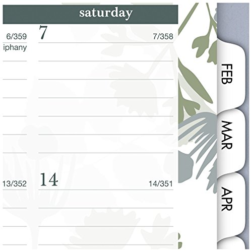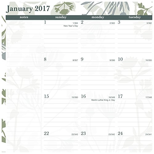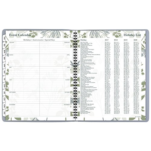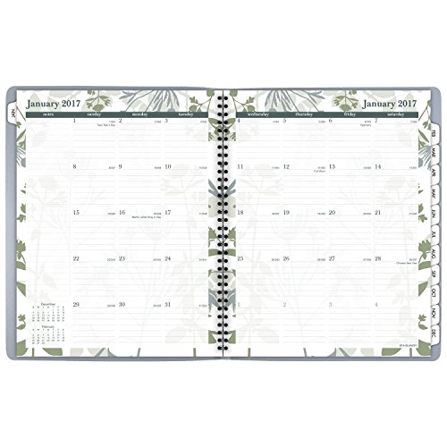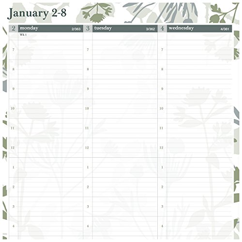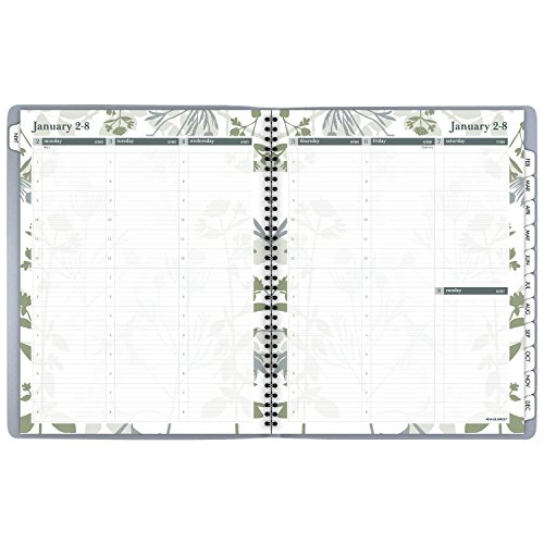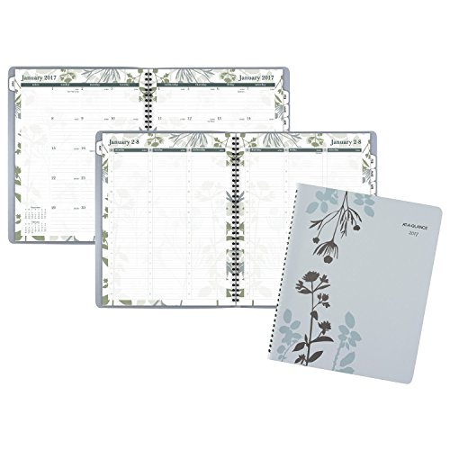 -. Binding : Office Product -. Brand : At-A-Glance -. EAN : 0038576278776 -. Feature : Weekly / Monthly appointment book / planner with a stylish botanical design. 12 month date range (January - December) with tabbed pages to facilitate turning to the current month. / One week per two page spread lists quarter-hourly appointment times for precise scheduling / Weekday appointment times in 15 minute intervals from 7:00 a.m. - 8:00 p.m. for full day scheduling. Weekends are untimed for greater flexibility. Weekly pages display Monday - Wednesday on left hand page and Thursday - Sunday on right hand page. / One month per two page spread with ruled blocks helps you plan events each month. Past and future month calendar blocks for reference also included on monthly pages, along with an extra column for notetaking. / Botanique design pages feature a graceful botanical design on the borders that is also featured on gray cover. Appointment book is wirebound. Premium paper resists ink bleed* and contains a minimum of 30% post-consumer recycled material. 8.5 in. x 11 in. pages. 9.5 in. x 11.37 in. x .44 in. overall book size. -. Label : ACCO Brands -. Manufacturer : ACCO Brands -. Model : 759-905-17 -. MPN : 759-905-17 -. NumberOfItems : 1 -. PackageQuantity : 1 -. PartNumber : 759-905-17 -. ProductGroup : Office Product -. ProductTypeName : OFFICE_PRODUCTS -. Publisher : ACCO Brands -. Studio : ACCO Brands -. Title : AT-A-GLANCE Weekly / Monthly Appointment Book / Planner 2017, 8-1/2 x 11", Botanique (759-905) -. UPC : 038576278776