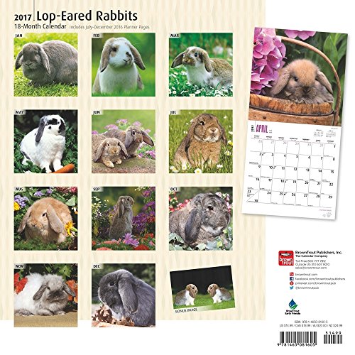 -. Binding : Office Product -. Brand : Browntrout -. EAN : 6531847618980 -. Feature : 2017 Calendar featuring beautiful full color photographed images for every month of the year. / Includes Holidays and Observances / Perfect for office spaces, bedrooms, classrooms and more! / Makes a great gift for friends and family! / Keep your appointments and Birthdays organized in one place! -. Label : Brown Trout -. Manufacturer : Brown Trout -. Model : 81605 -. MPN : 81605 -. PackageQuantity : 1 -. PartNumber : 81605 -. ProductGroup : Office Product -. ProductTypeName : OFFICE_PRODUCTS -. Publisher : Brown Trout -. Studio : Brown Trout -. Title : 2017 Monthly Wall Calendar - Lop Eared Rabbits -. UPC : 712411770198